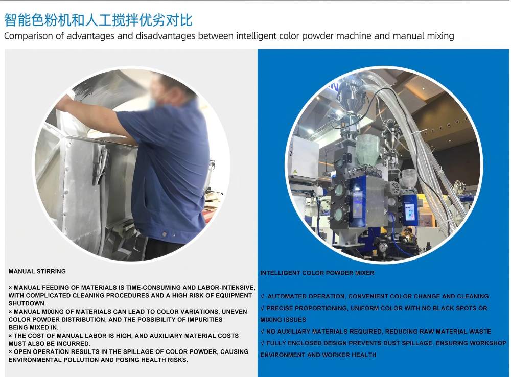 100KG/ຊ"ການຜະສົມຜົງສີອັດສະລິຍະ" ສາມາດໄດ້ຮັບການປະສົມປະສານ seamlessly ກັບລະບົບການໃຫ້ອາຫານສູນກາງ, ລະບົບລໍາລຽງສູນກາງ, ແລະລະບົບການຈັດການວັດສະດຸອັດຕະໂນມັດ. ເຄື່ອງຜະສົມສີພາດສະຕິກແມ່ນຕິດຕັ້ງດ້ວຍເຊັນເຊີການຊັ່ງນໍ້າຫນັກທີ່ມີຄວາມແມ່ນຍໍາສູງ, ເຊິ່ງຮັບປະກັນຄວາມສອດຄ່ອງຂອງຂະບວນການປະສົມແລະຄວາມສອດຄ່ອງຂອງສີ, ແລະສະຫນັບສະຫນູນອັດຕາສ່ວນອັດຕະໂນມັດຂອງຜົງຫຼາຍອົງປະກອບແລະສານເພີ່ມ.